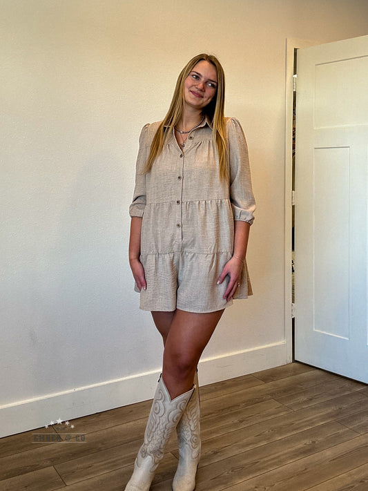Quarter-Sleeve Button Romper