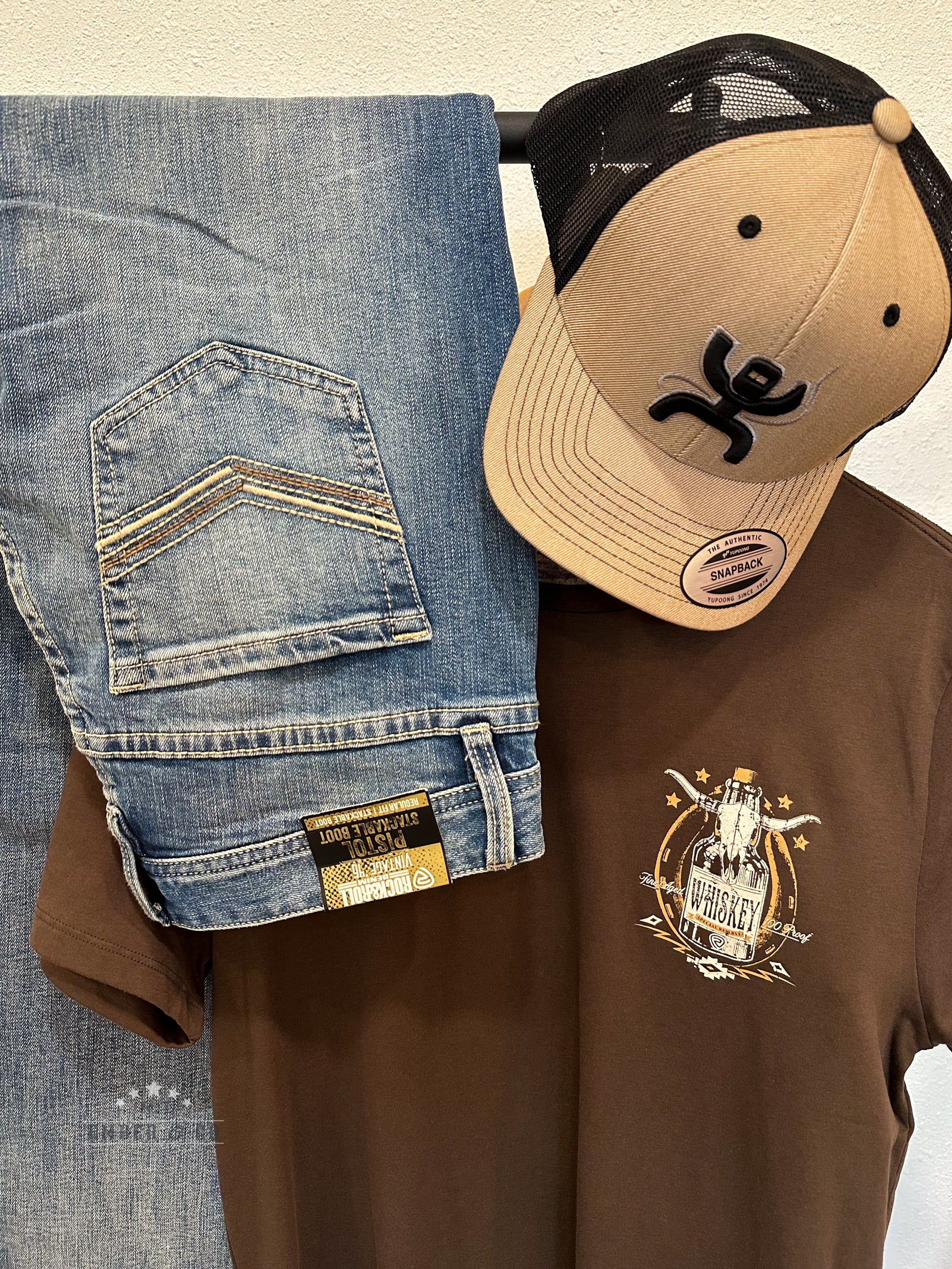 The perfect tan color on a Hooey brand hat with black and grey logo.