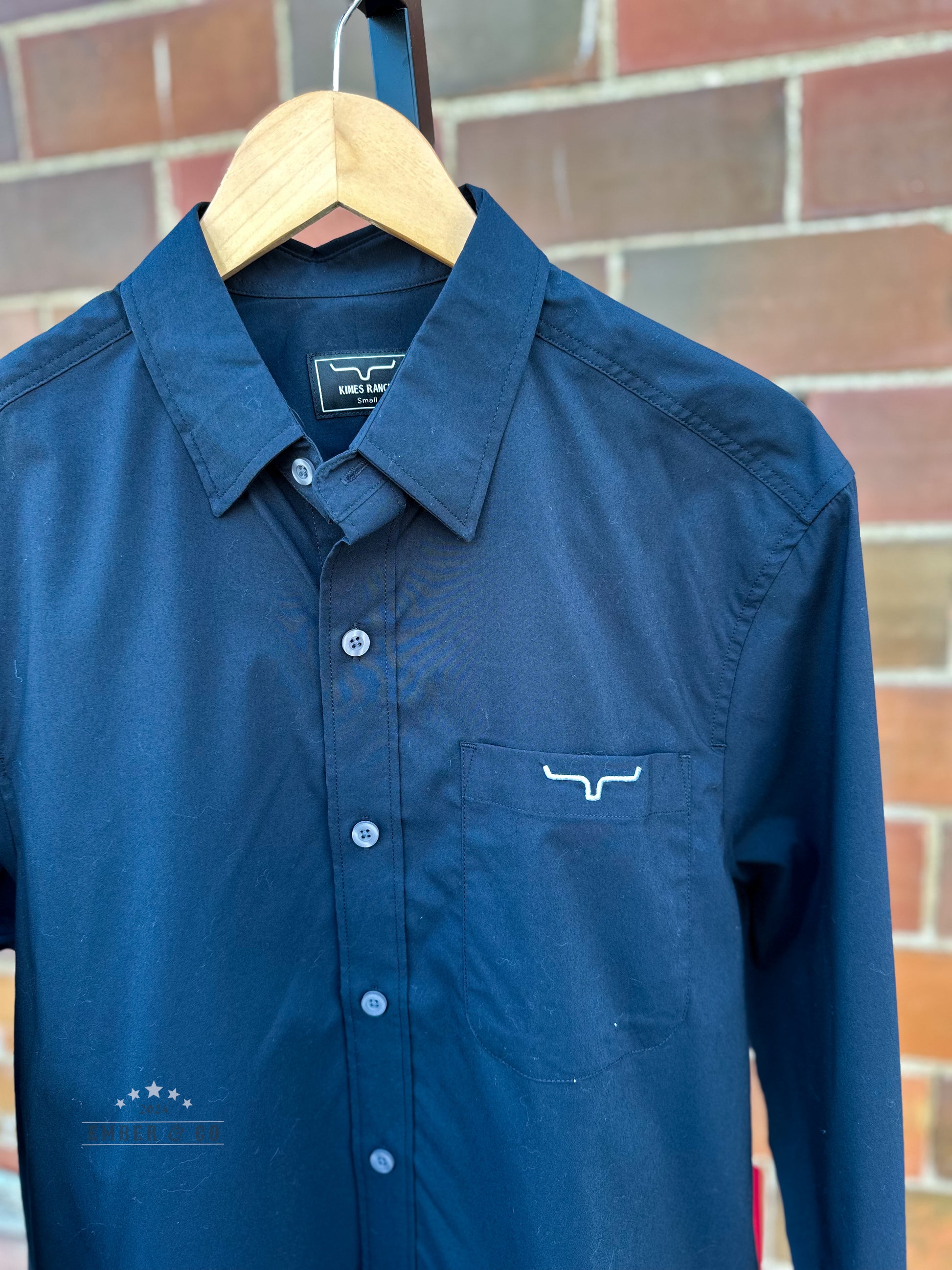 This KR Men's Team Shirt combines classic Western style with everyday comfort. Featuring a bold white embroidered Kimes Ranch logo on a sleek black long-sleeve design. Wear it confidently for work or outings,
